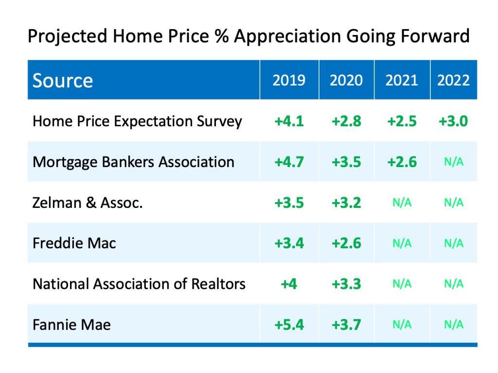 Here is a table showing the predicted levels of appreciation from six major housing sources:As we can see, every source believes home prices will continue to appreciate (albeit at lower levels than we have seen over the last several years). But, not one source is calling for residential real estate values to depreciate.