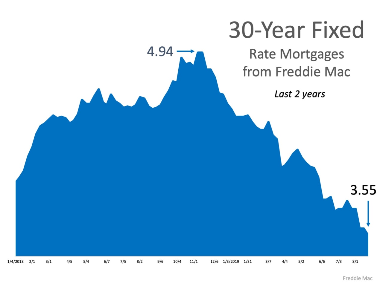 Mortgage rates have fallen by over a full percentage point since Q4 of 2018, settling at near-historic lows. This is big news for buyers looking to get more for their money in the current housing market.