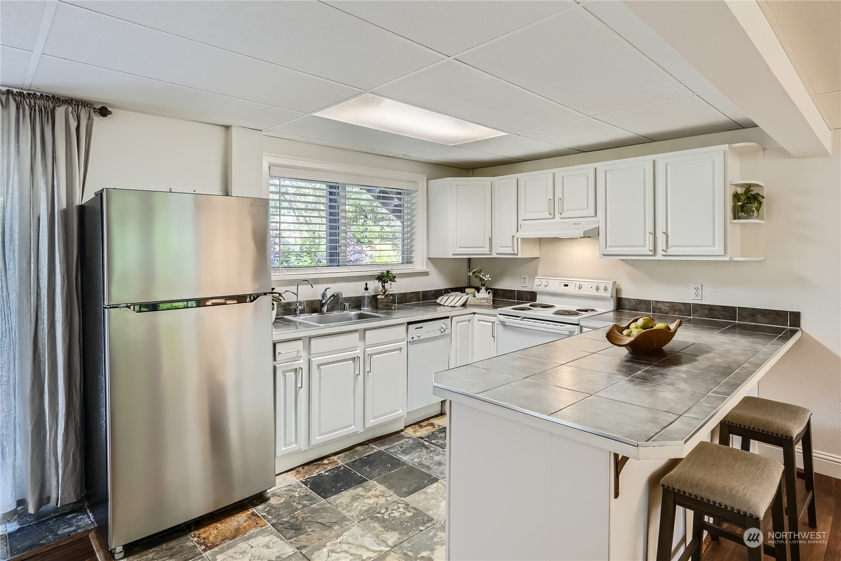 Light & bright 5 bedroom, 2.75 bath home in Juanita in quiet cul-de-sac. Features include spacious living room w/ fireplace, upgraded wood laminate flooring, updated kitchen w/ natural cherry cabinets, granite counters, eating bar & SS appliances. Dining room w/ French doors open to spacious deck overlooking the patio & backyard. Daylight lower level w/ 2nd kitchen, 2 bedrooms, full bath & a family room w/ a fireplace. Established rental (both long-term & Airbnb) for the past 10 years - great options for MIL or income. Park-like back yard is fully-fenced and features a stone paver patio, level grassy yard, firepit, lush mature landscaping w/ fruit trees & magnolia trees - enjoy your outdoor retreat! Minutes to Juanita Village & Beach Park.