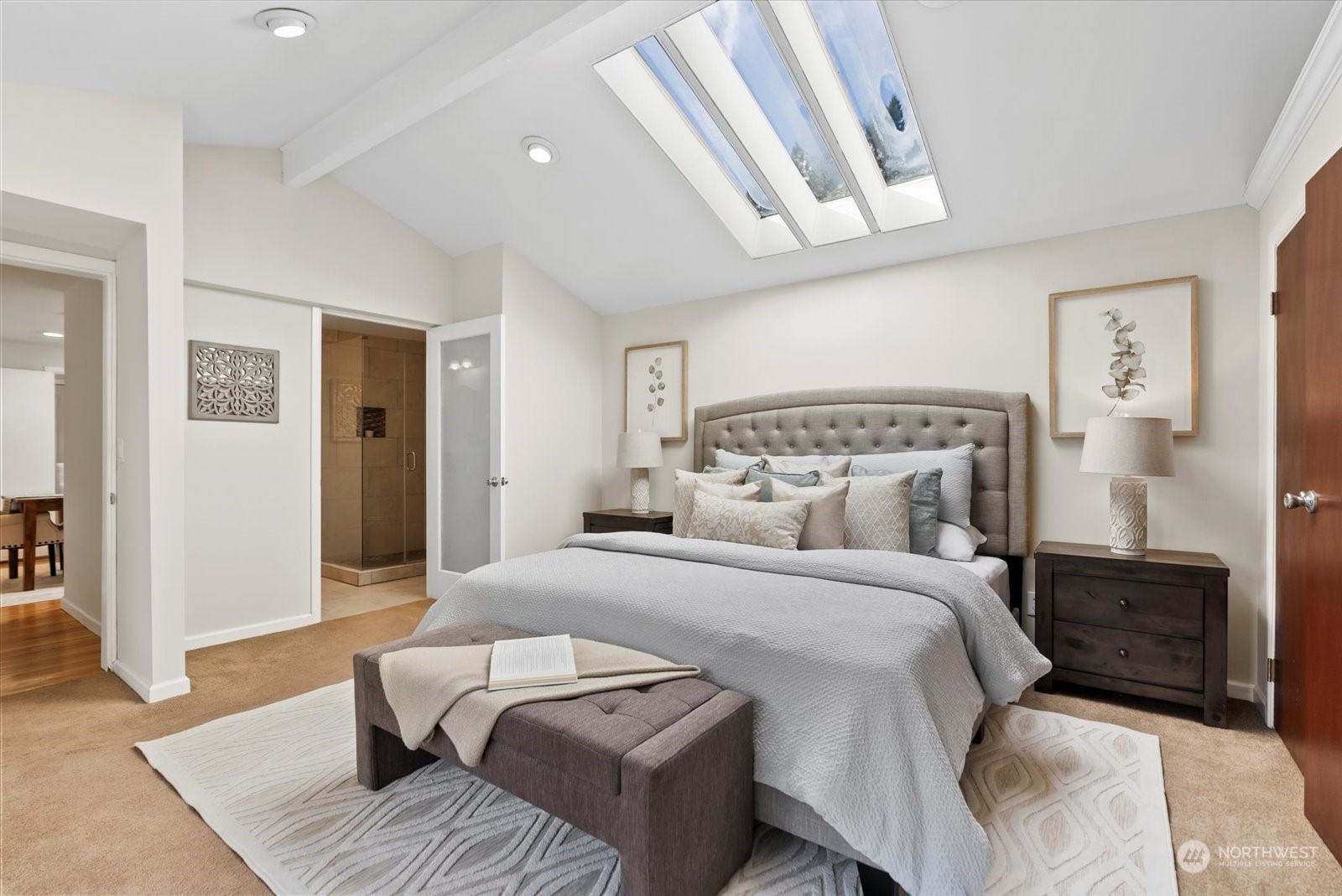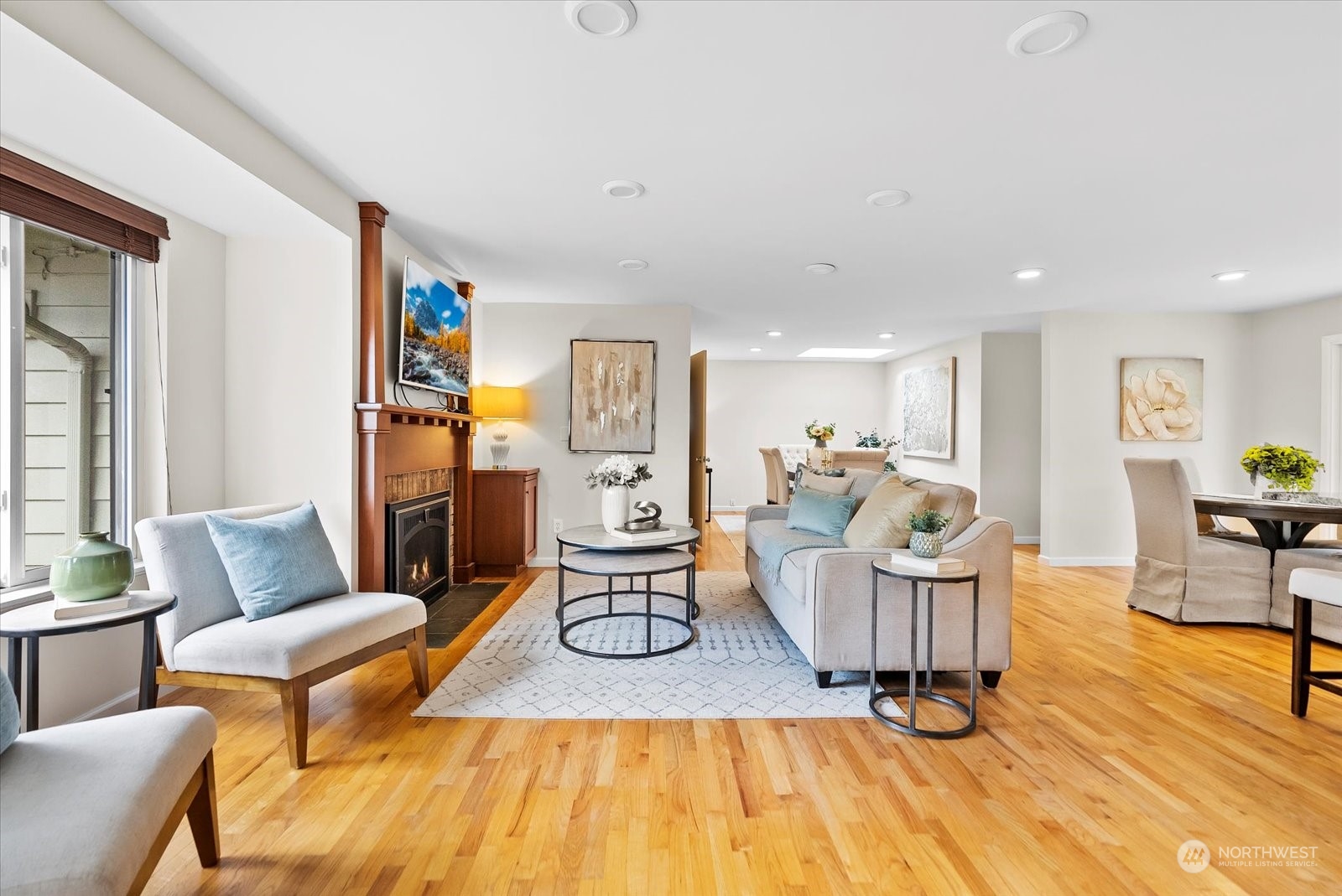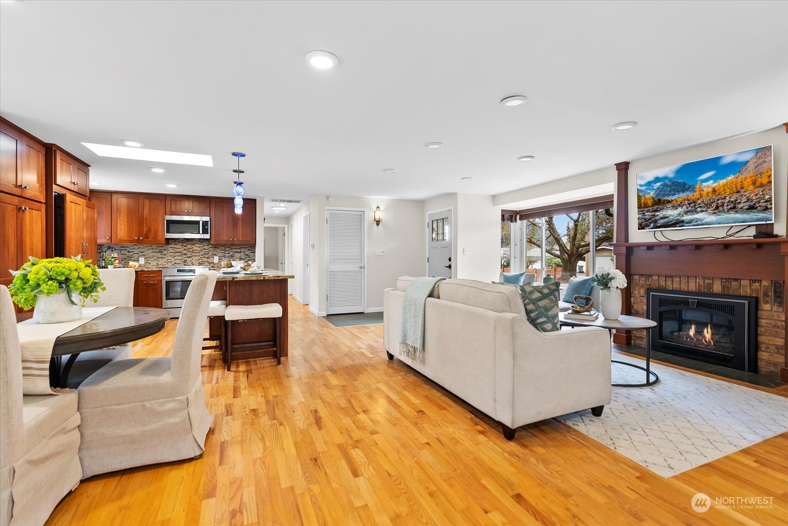 Beautifully remodeled rambler in Bellewood East features an open floor plan that's ideal for comfortable living & entertaining. Living room with gas fireplace. Kitchen w/cherry wood cabinetry, island & upgraded stainless-steel appliances. Formal dining room + kitchen eating area. There are 4 bedrooms & 2.5 baths. Primary suite w/vaulted ceiling with a skylight, double closets, French doors to the back yard & luxe 3/4 bath with a dual-sink vanity, shower & heated towel rack. Fully fenced peaceful backyard retreat with a spacious patio and deck - a great place to BBQ & relax! Great location close to Ardmore Park & Interlake High School. Easy proximity to Crossroads & Overlake shopping, Microsoft, Amazon, DT Redmond, Bellevue and SR-520.