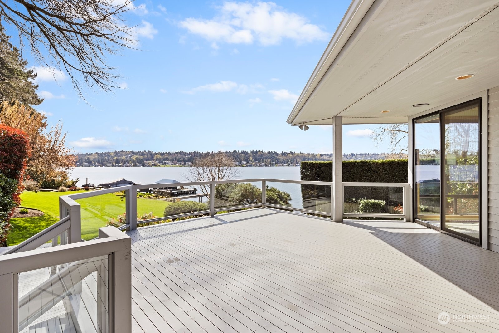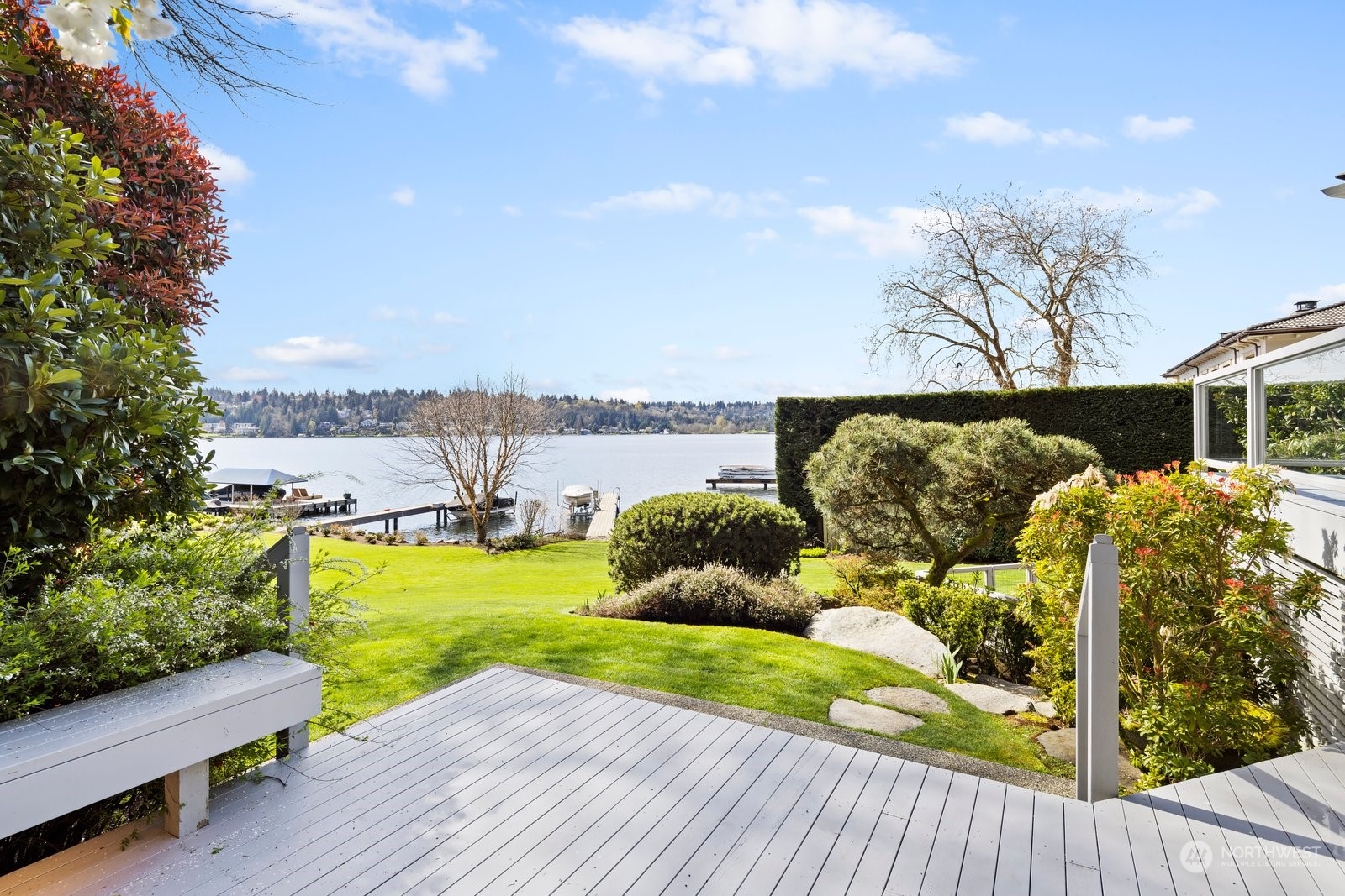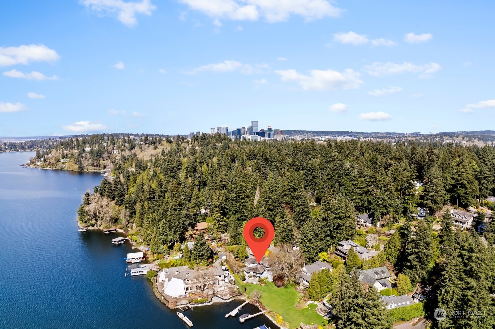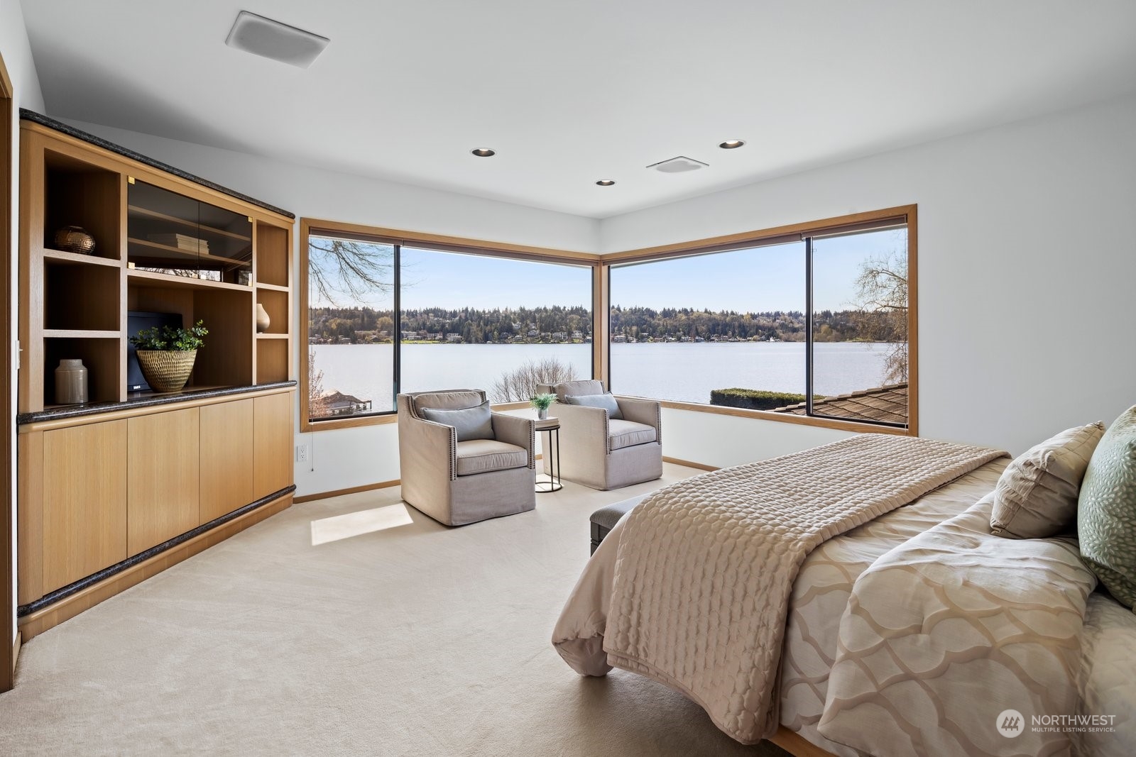 Enjoy refined lakefront living in this Northwest contemporary home built by Design Guild. 43' of prime, southwest facing no-bank waterfront with sandy beach, newer 71' dock w/6,000 lb. boat lift. Expansive windows maximize the light and captivating views. Designed for gathering, the main floor has formal living and dining rooms, open-concept kitchen, family room + den/office. Upper level w/primary suite w/lake views & 5-piece bath. Additional upper level bedroom with 1/2 bath. Daylight lower level w/rec-room, 3 bedrooms, 1.75 baths, media room & 2nd kitchen. 22,276 sf lot w/expansive decks, patio, sport court & lush sprawling lawn. 3-car garage + 4th gar & parking for 10-12 cars. Just minutes to Bellevue, parks, shopping and restaurants.