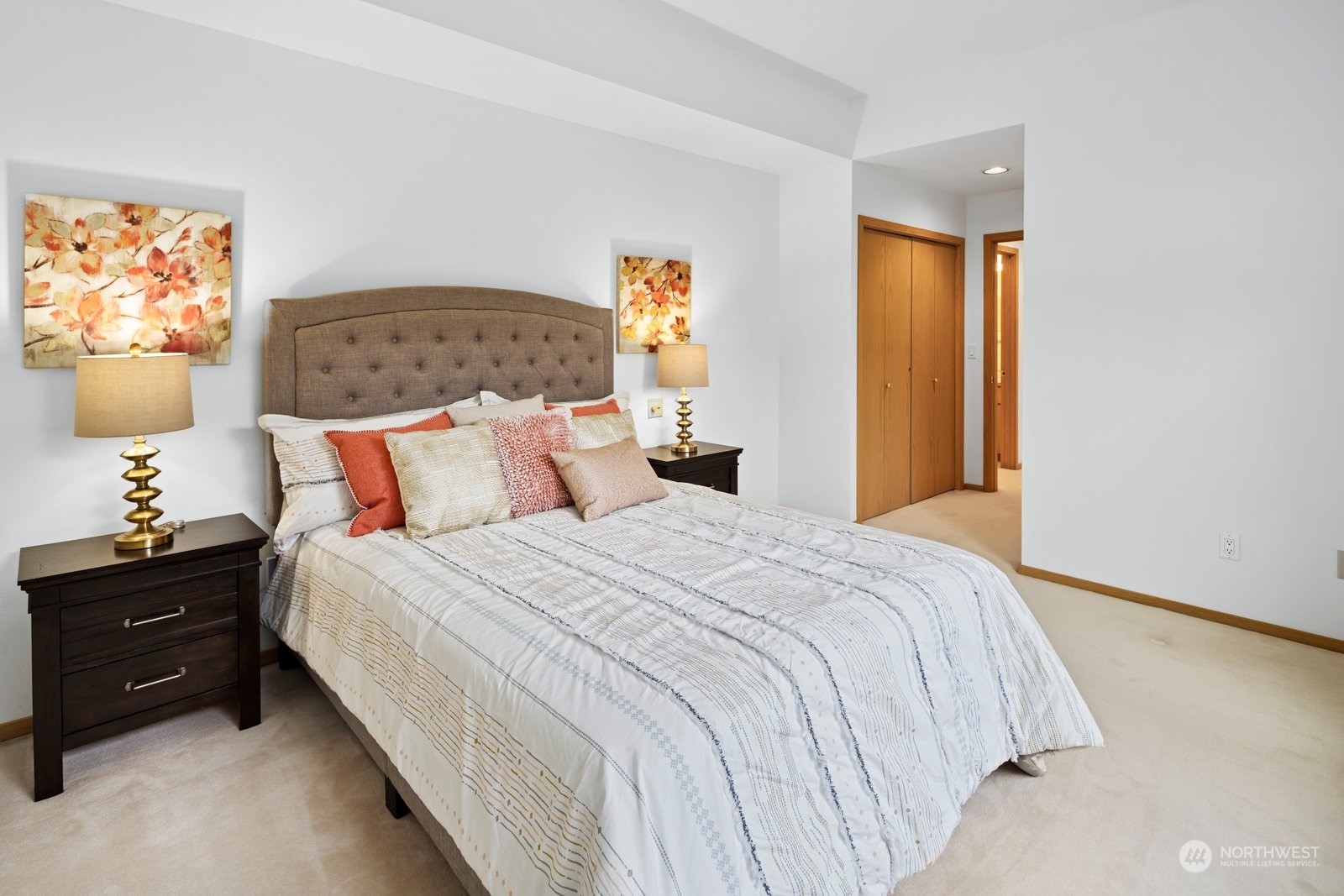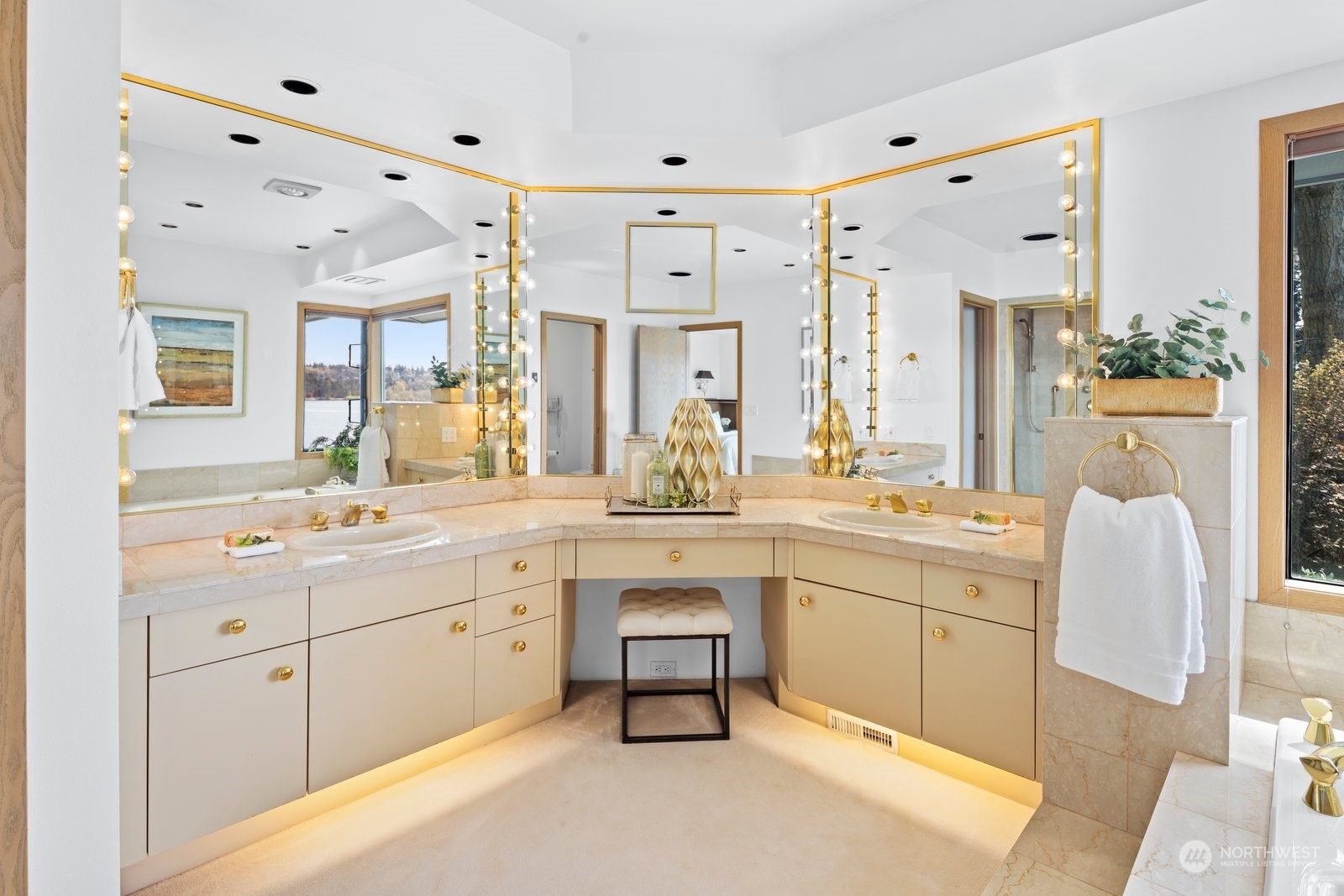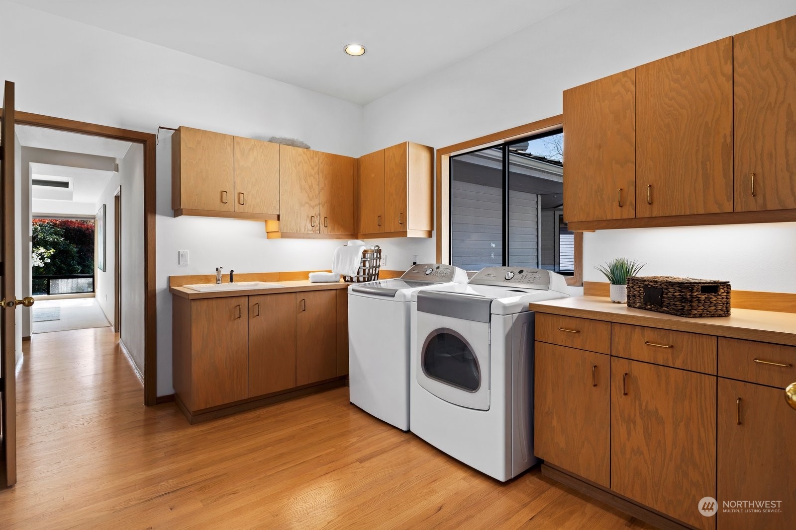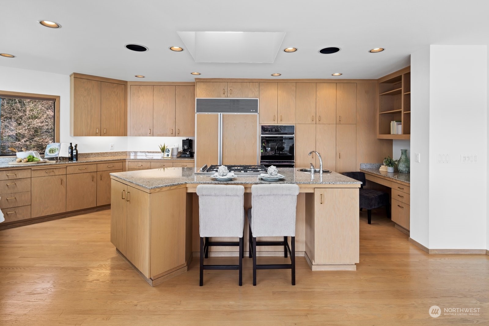 Enjoy refined lakefront living in this Northwest contemporary home built by Design Guild. 43' of prime, southwest facing no-bank waterfront with sandy beach, newer 71' dock w/6,000 lb. boat lift. Expansive windows maximize the light and captivating views. Designed for gathering, the main floor has formal living and dining rooms, open-concept kitchen, family room + den/office. Upper level w/primary suite w/lake views & 5-piece bath. Additional upper level bedroom with 1/2 bath. Daylight lower level w/rec-room, 3 bedrooms, 1.75 baths, media room & 2nd kitchen. 22,276 sf lot w/expansive decks, patio, sport court & lush sprawling lawn. 3-car garage + 4th gar & parking for 10-12 cars. Just minutes to Bellevue, parks, shopping and restaurants.