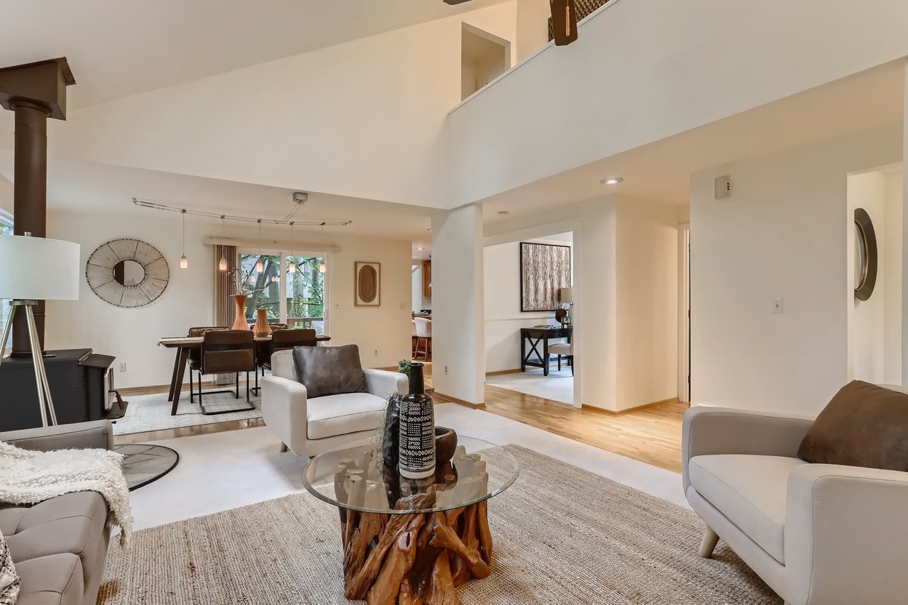 Beautiful two-story home with daylight lower level in the Foresthill area of Somerset. Features include refinished hardwood floors, neutral carpet & paint, updated kitchen & baths. Spacious living room with vaulted ceilings, wood stove & expansive windows. Adjoining dining room w/ access to upgraded deck. Main floor den/office, remodeled kitchen with eating bar, stainless steel appliances includes 5-burner gas cooktop, dining room with door to deck. 2 bedrooms & 1 bath up, 2 bedrooms & 1 bathroom on lower level. Private 9,806 sf lot backs to greenbelt, fenced back yard. Somerset schools!